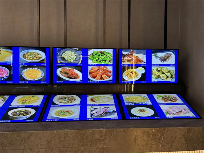 浙江嵊州XXX海鮮餐廳信息發(fā)布廣告機(jī)展示
